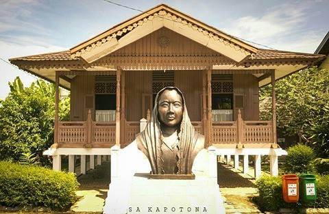 Di halaman rumah juga dipajang patung kepala sampai bahu dari Ibu Negara pertama Republik Indonesia, yang menggunakan kerudung.
